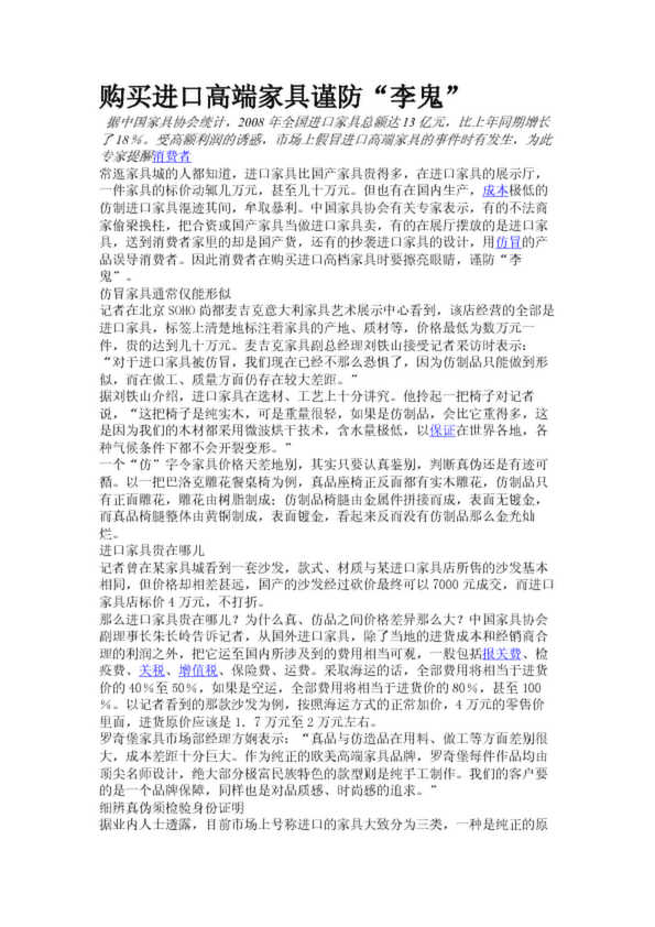 購買進口高端家具謹防“李鬼”
