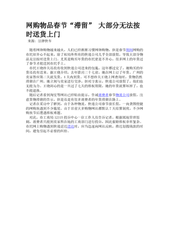 網購物品春節“滯留” 大部分無法按時送貨上門