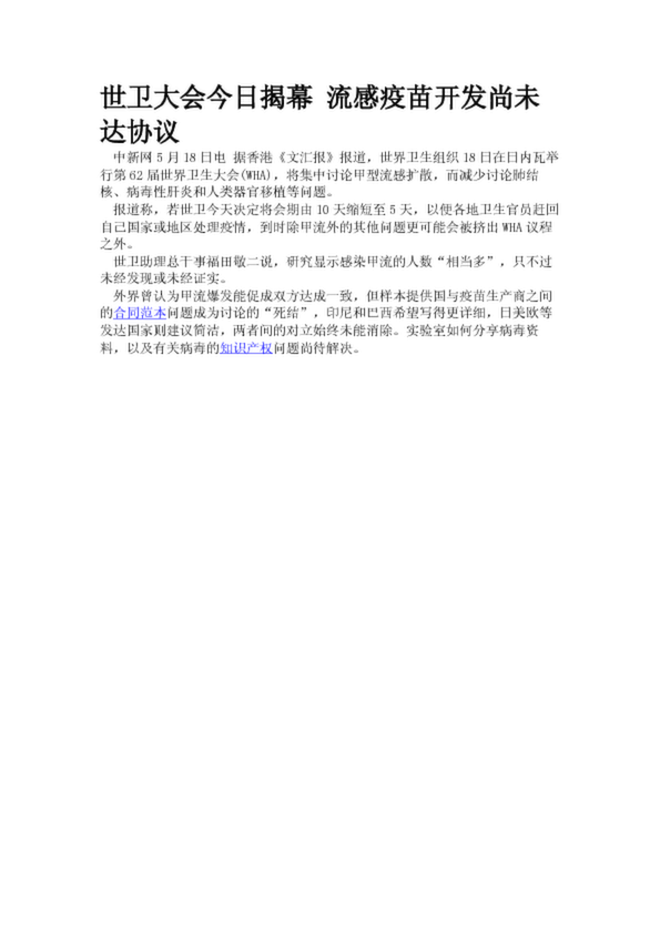 世衛大會今日揭幕 流感疫苗開發尚未達協議(17.05KB)
