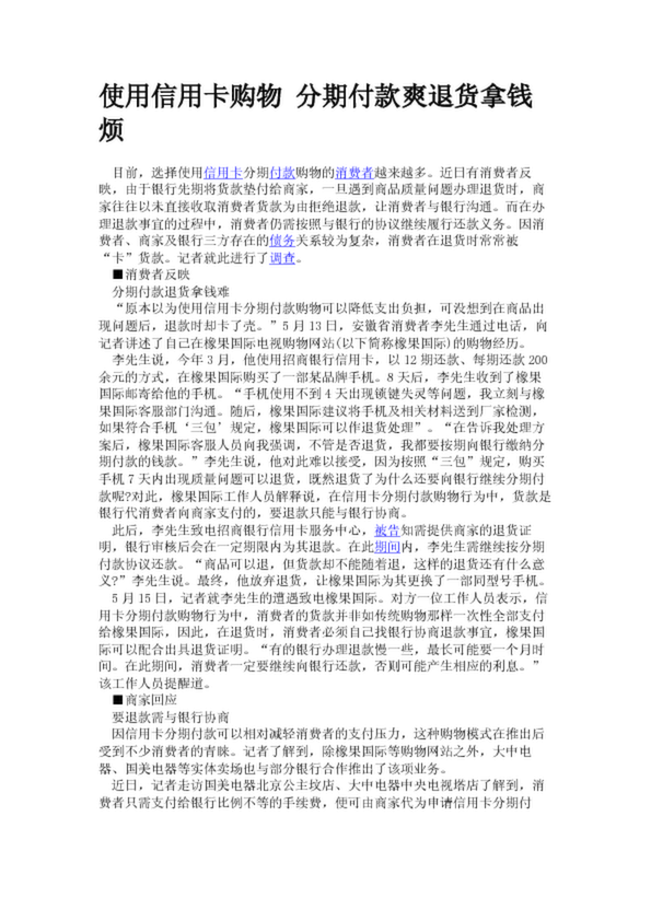 使用信用卡購物 分期付款爽退貨拿錢煩(28.63KB)