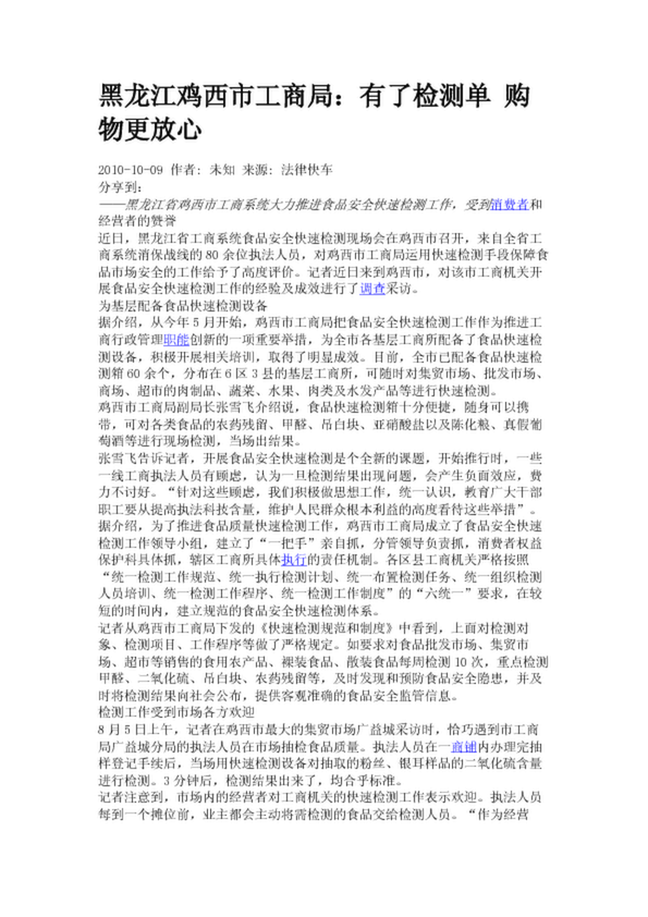 黑龍江雞西市工商局:有了檢測單 購物更放心