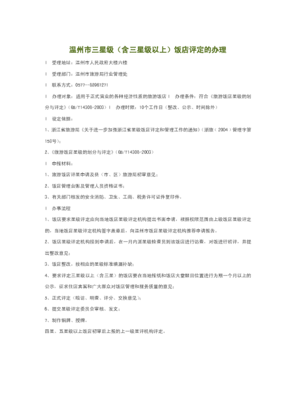 溫州市三星級(含三星級以上)飯店評定的辦理(15.00KB)