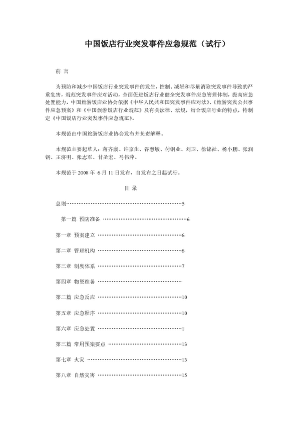 中國飯店行業(yè)突發(fā)事件應急規(guī)范(試行)
