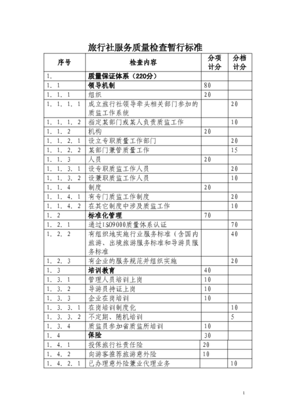 旅行社服務(wù)質(zhì)量檢查暫行標(biāo)準(zhǔn)