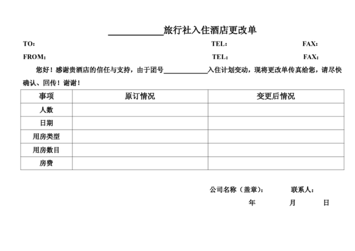 旅行社計調-入住酒店更改單
