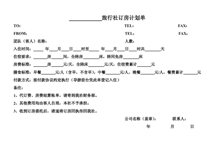 旅行社計調-訂房計劃單