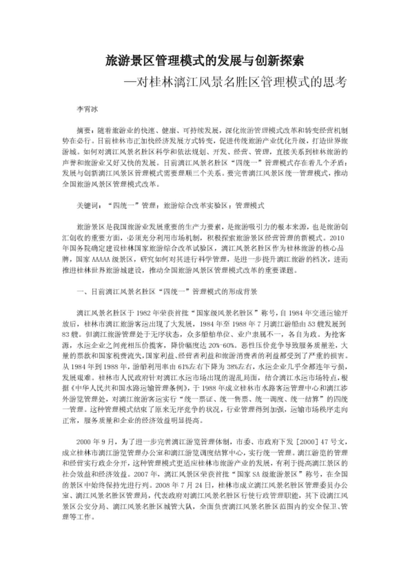 旅游景區管理模式的發展與創新探索——對桂林漓江風景名勝區管理模式的思考