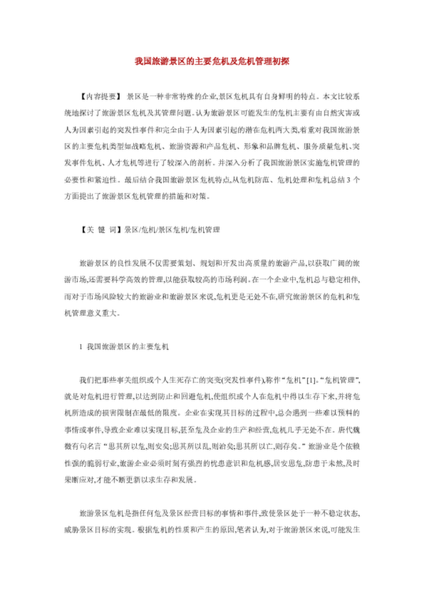 我國旅游景區(qū)的主要危機(jī)及危機(jī)管理初探