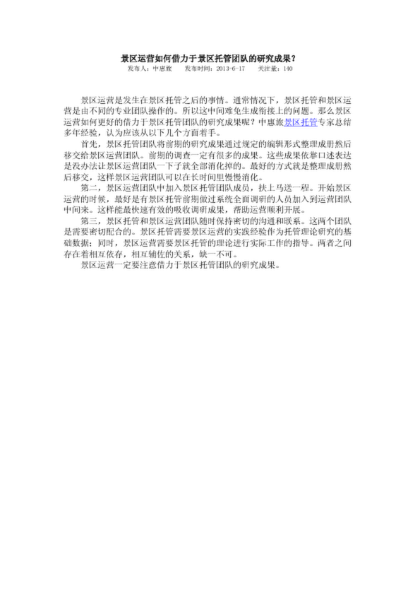 景區運營如何借力于景區托管團隊的研究成果?(2.19KB)