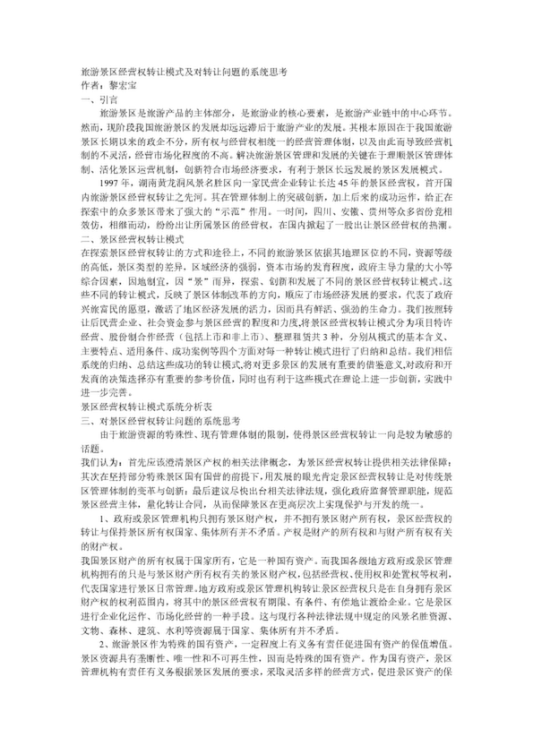 旅游景區經營權轉讓模式及對轉讓問題的系統思考(14.50KB)