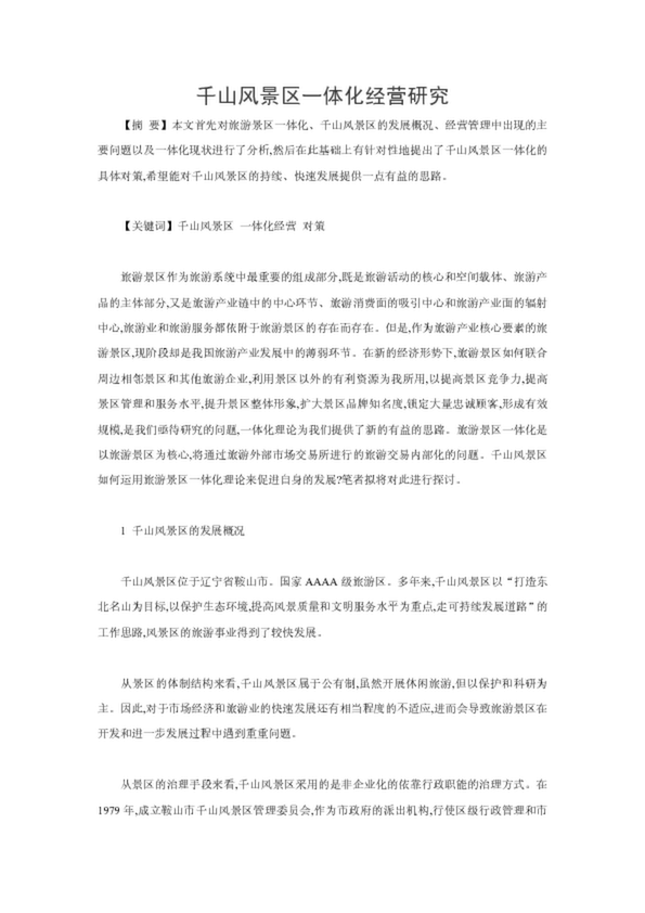 千山風(fēng)景區(qū)一體化經(jīng)營(yíng)研究