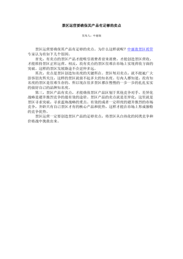 景區(qū)運(yùn)營要確保其產(chǎn)品有足夠的賣點(diǎn)