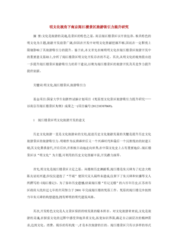 明文化視角下南京閱江樓景區旅游吸引力提升研究
