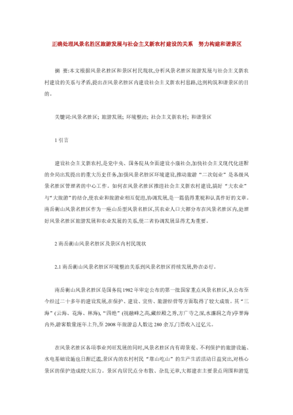 正確處理風景名勝區(qū)旅游發(fā)展與社會主義新農(nóng)村建設(shè)的關(guān)系努力構(gòu)建和諧景區(qū)