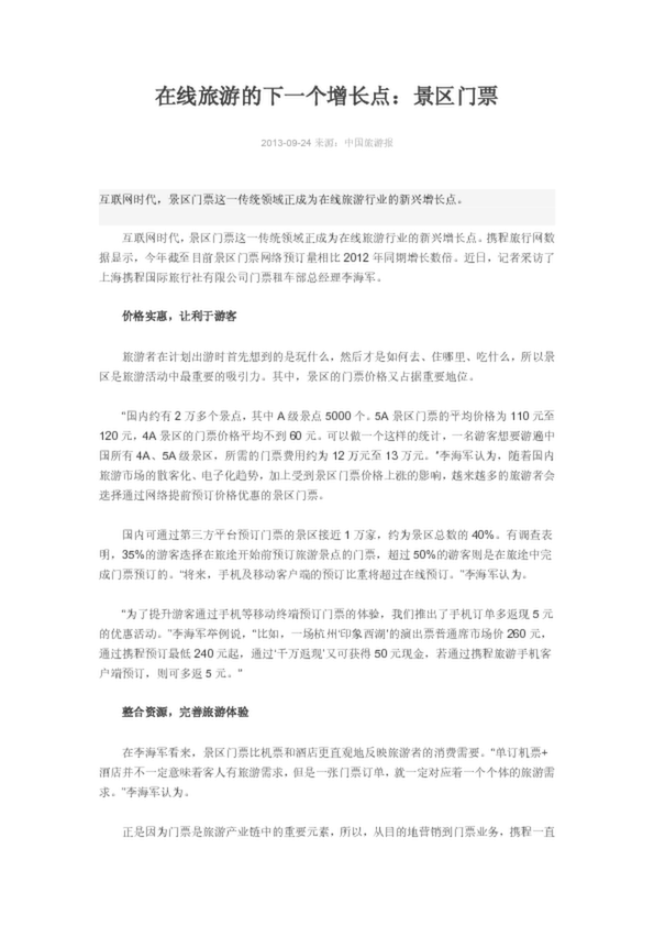 在線旅游的下一個增長點:景區門票