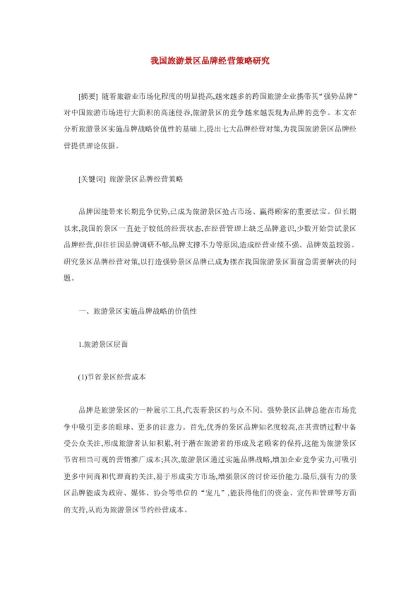 我國旅游景區品牌經營策略研究