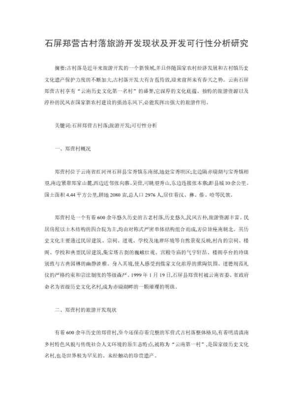 石屏鄭營(yíng)古村落旅游開(kāi)發(fā)現(xiàn)狀及開(kāi)發(fā)可行性分析研究