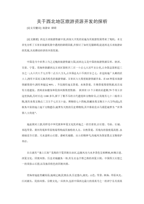 關于西北地區旅游資源開發的探析