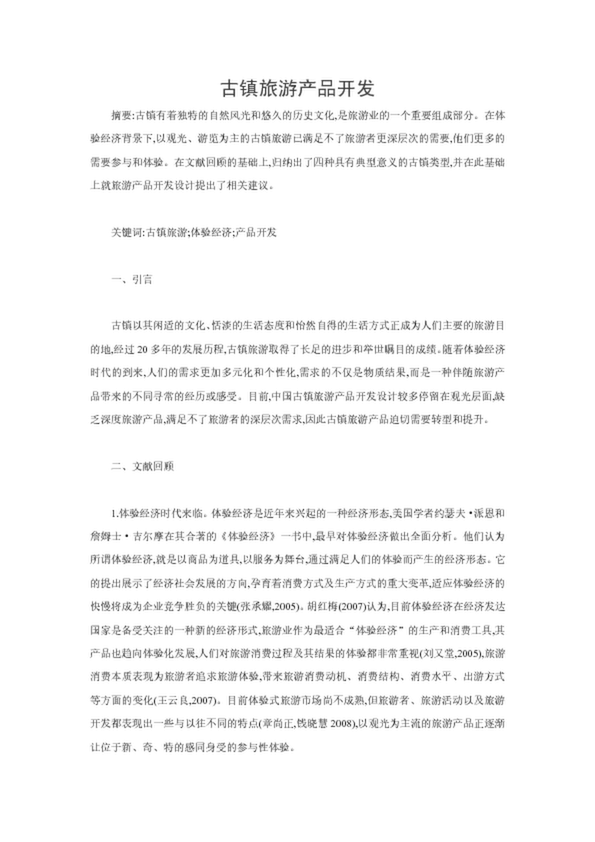 古鎮(zhèn)旅游產(chǎn)品開發(fā)