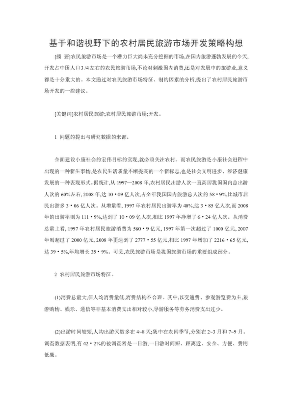 基于和諧視野下的農村居民旅游市場開發策略構想(17.00KB)