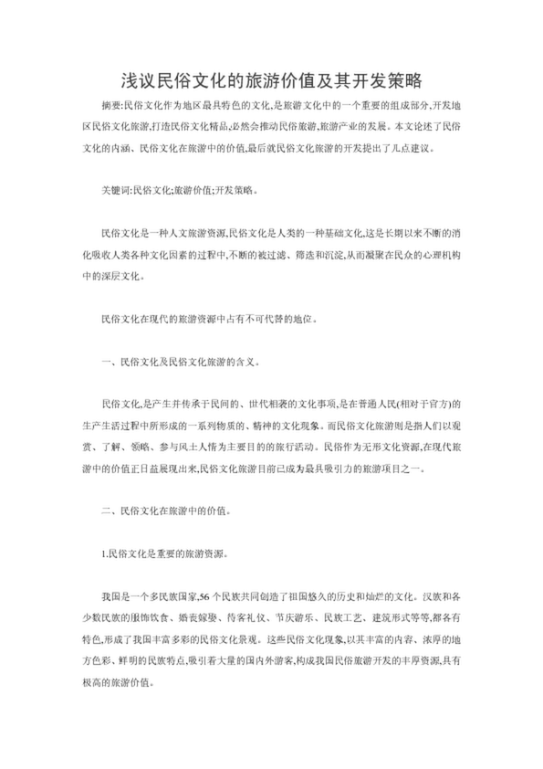 淺議民俗文化的旅游價值及其開發策略