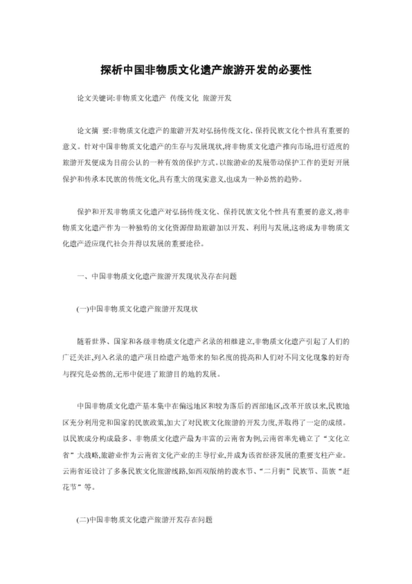 探析中國(guó)非物質(zhì)文化遺產(chǎn)旅游開發(fā)的必要性