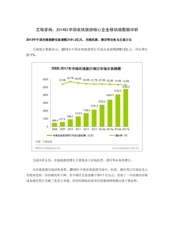 艾瑞咨詢:2014Q1中國在線旅游核心企業移動端數據評析(0.20MB)