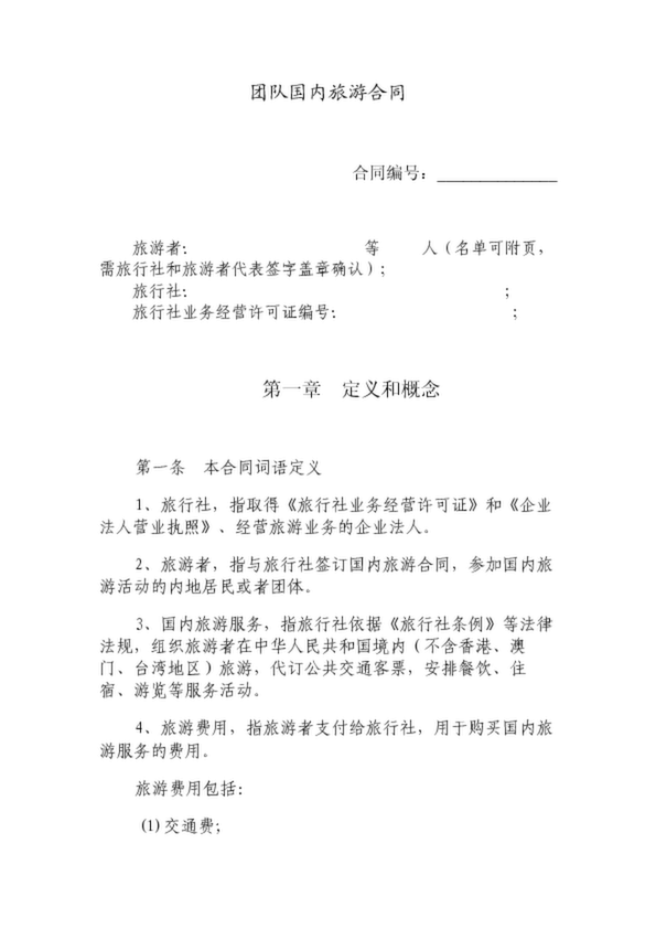 團隊國內旅游合同(一)