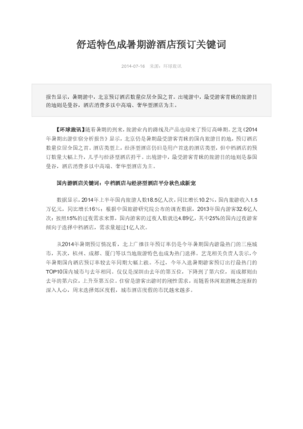 2014年5月中國酒店業經濟型品牌發展報告