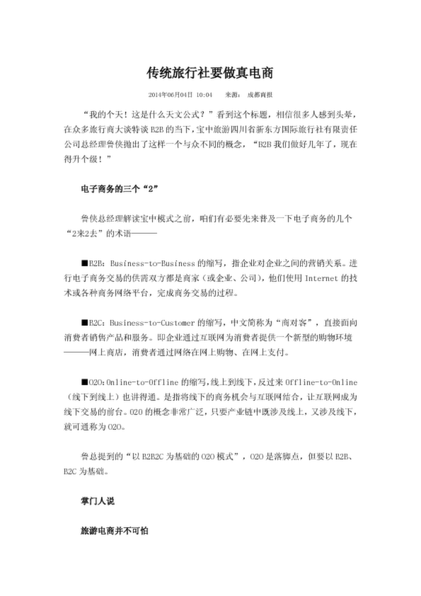 傳統(tǒng)旅行社把信息技術(shù)巧妙地運用到自己的生產(chǎn)經(jīng)濟(jì)各個環(huán)節(jié),運用好了就是優(yōu)秀的旅游電子商務(wù)。 目前,傳統(tǒng)旅游受到前所未有的沖擊,很多傳統(tǒng)旅游企業(yè)也開始嘗試向旅游電子商務(wù)轉(zhuǎn)型,但這些企業(yè)對旅游電子商務(wù)了解甚少,再加...