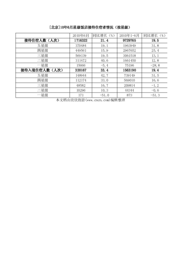 [北京]10年6月星級(jí)飯店接待住宿者情況(按星級(jí))