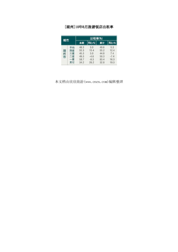 [湖州]2010年10月星級(jí)飯店平均房價(jià)和出租率