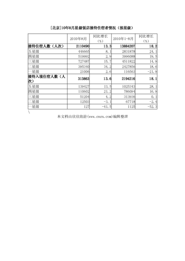 [北京]10年8月星級飯店接待住宿者情況(按星級)(57.76KB)