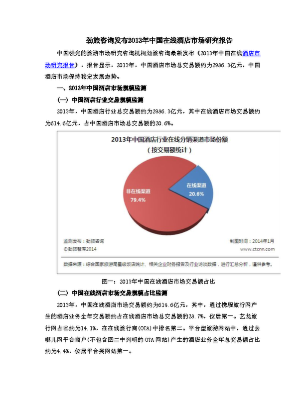 勁旅咨詢發(fā)布2013年中國在線酒店市場研究報告