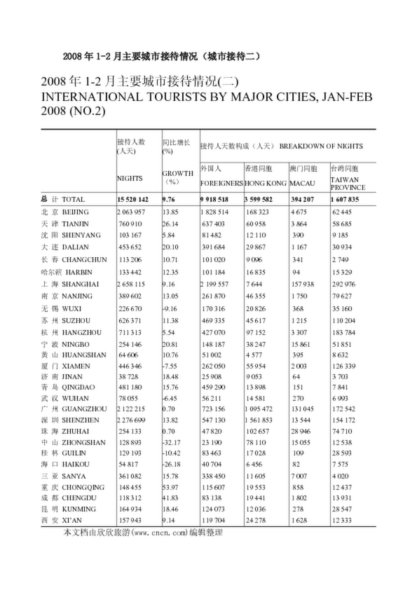 2008年1-2月主要城市接待情況(城市接待二)
