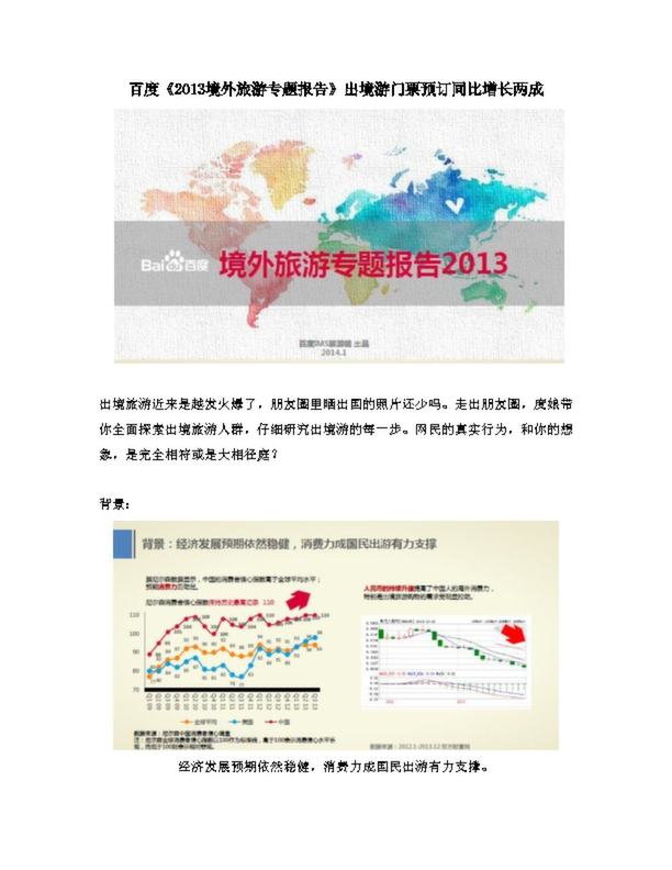 百度《2013境外旅游專題報告》出境游門票預訂同比增長兩成
