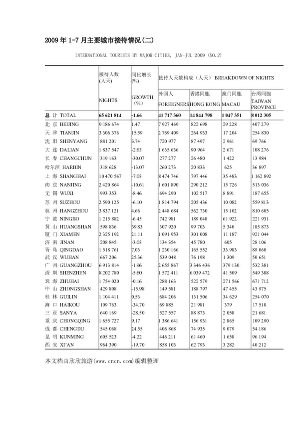 2009年1-7月主要城市接待情況(二)(82.94KB)