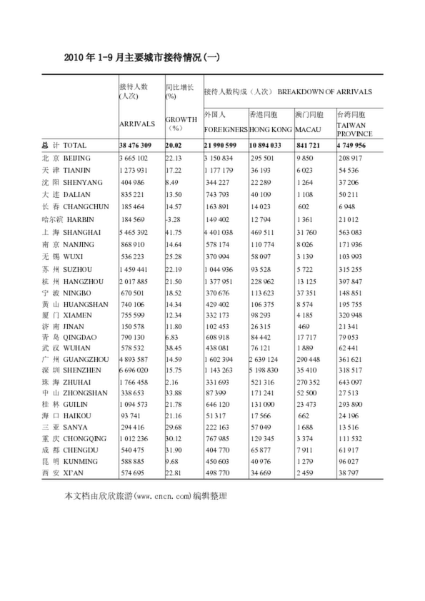 2010年1-9月主要城市接待情況(一)(83.31KB)