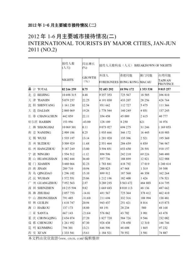 2012年1-6月主要城市接待情況(二)(83.62KB)