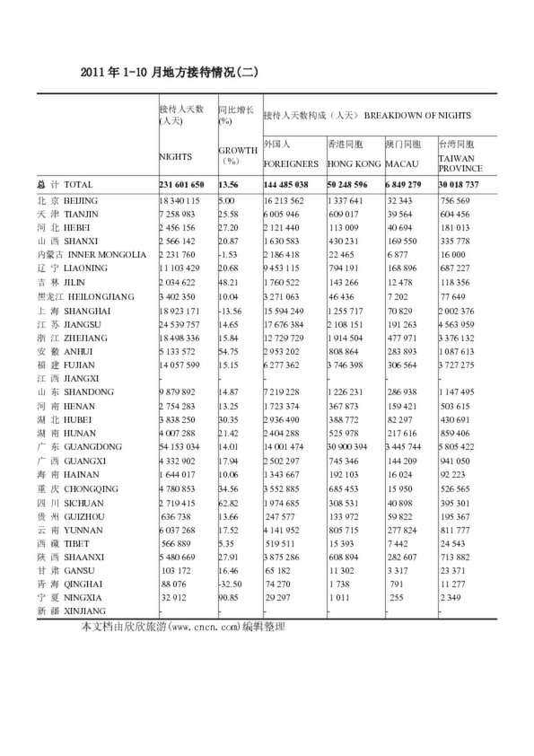 2011年1-10月地方接待情況(二)
