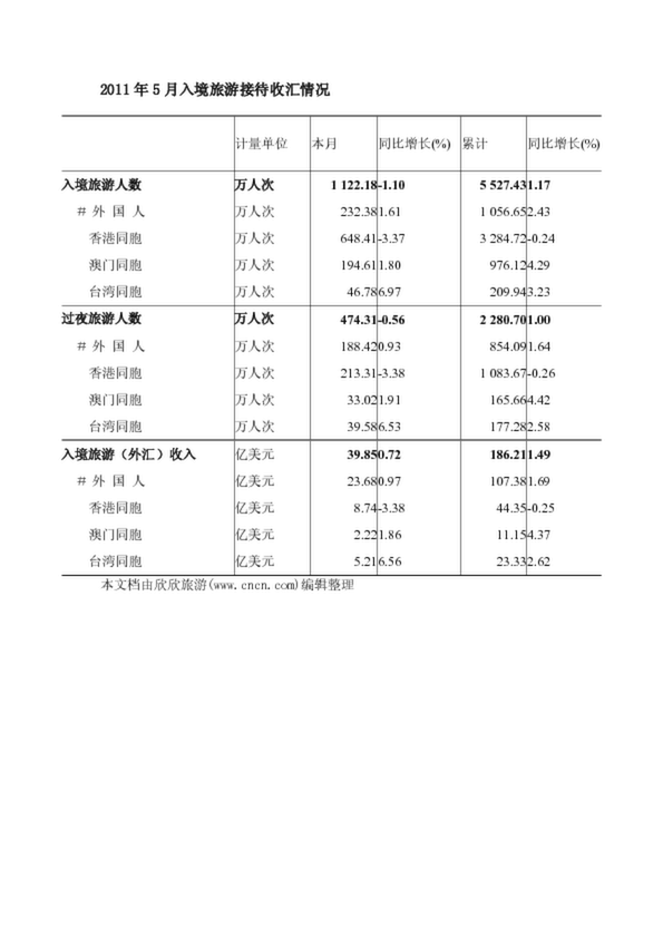 2011年5月入境旅游接待收匯情況(33.56KB)