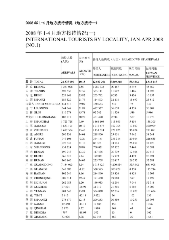 2008年1-4月地方接待情況 (地方接待一)