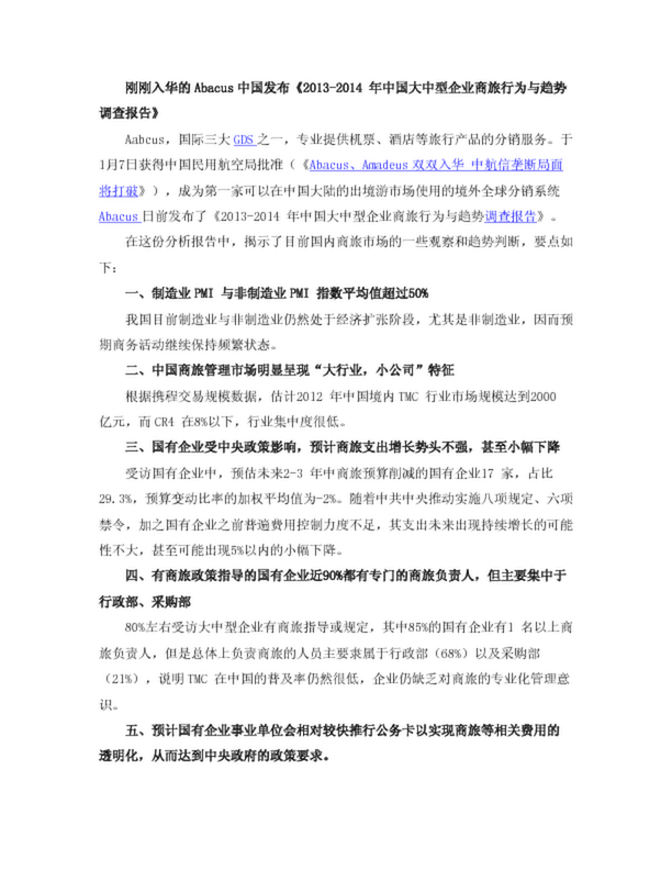 剛剛入華的Abacus中國發布《2013-2014 年中國大中型企業商旅行為與趨勢調查報告》(0.25MB)