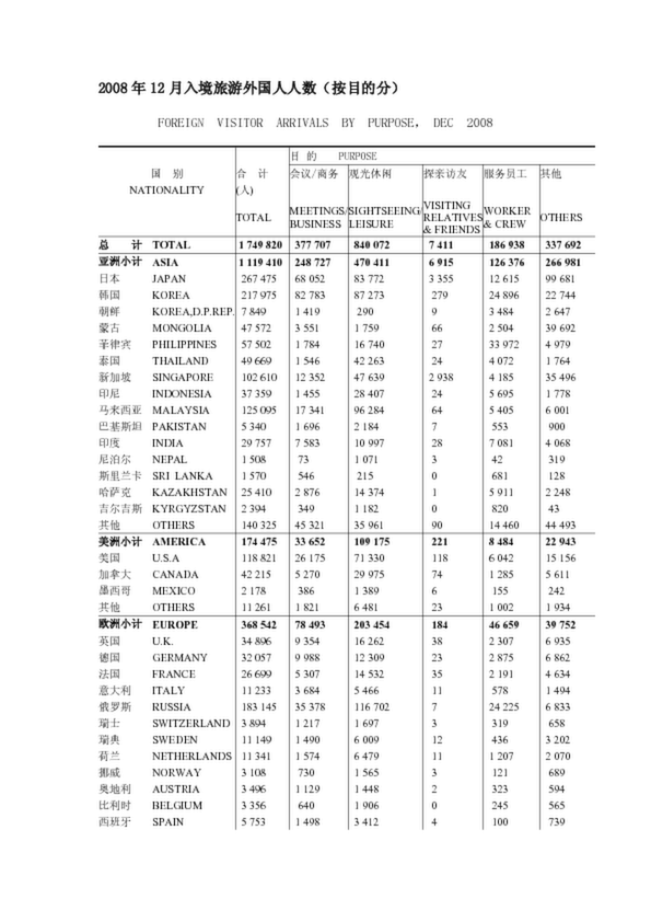 2008年12月入境旅游外國人人數(shù)(按目的分)