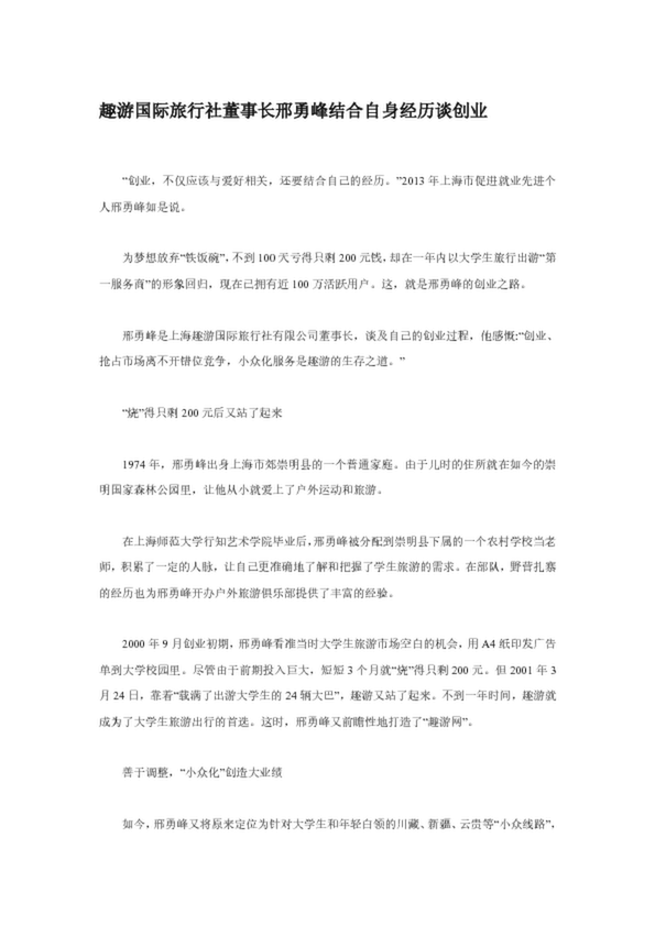 趣游國際旅行社董事長邢勇峰結合自身經歷談創業