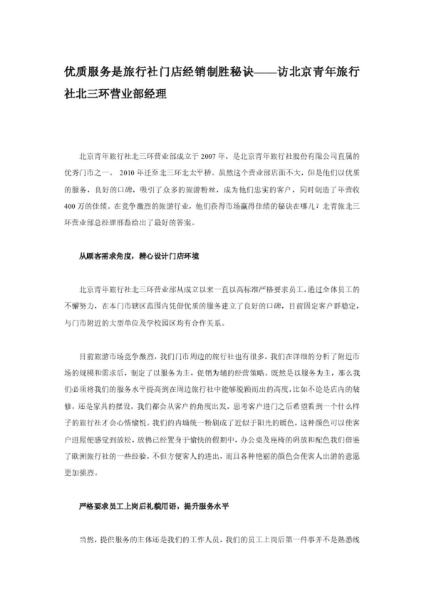 優(yōu)質(zhì)服務(wù)是旅行社門店經(jīng)銷制勝秘訣——訪北京青年旅行社北三環(huán)營(yíng)業(yè)部經(jīng)理