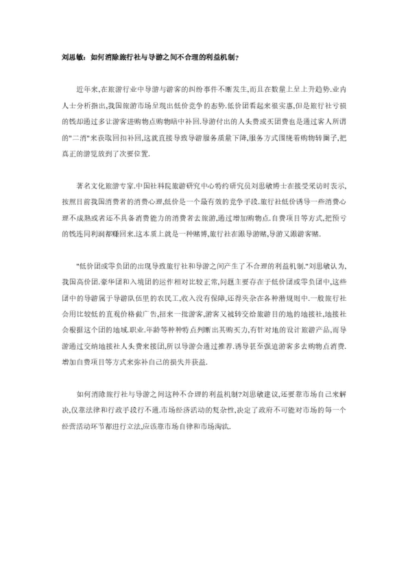 劉思敏:如何消除旅行社與導游之間不合理的利益機制