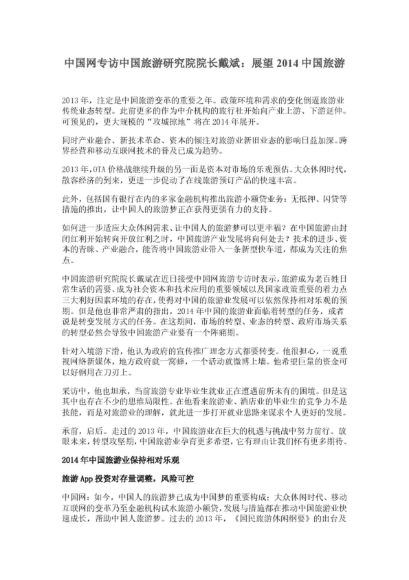 中國(guó)網(wǎng)專訪中國(guó)旅游研究院院長(zhǎng)戴斌:展望2014中國(guó)旅游