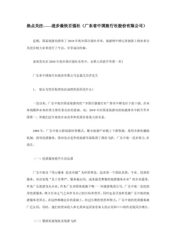 熱點關(guān)注——進(jìn)步最快百強社(廣東省中國旅行社股份有限公司)