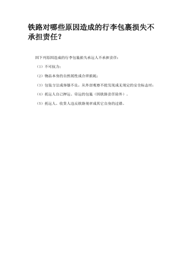 鐵路對哪些原因造成的行李包裹損失不承擔責任?
